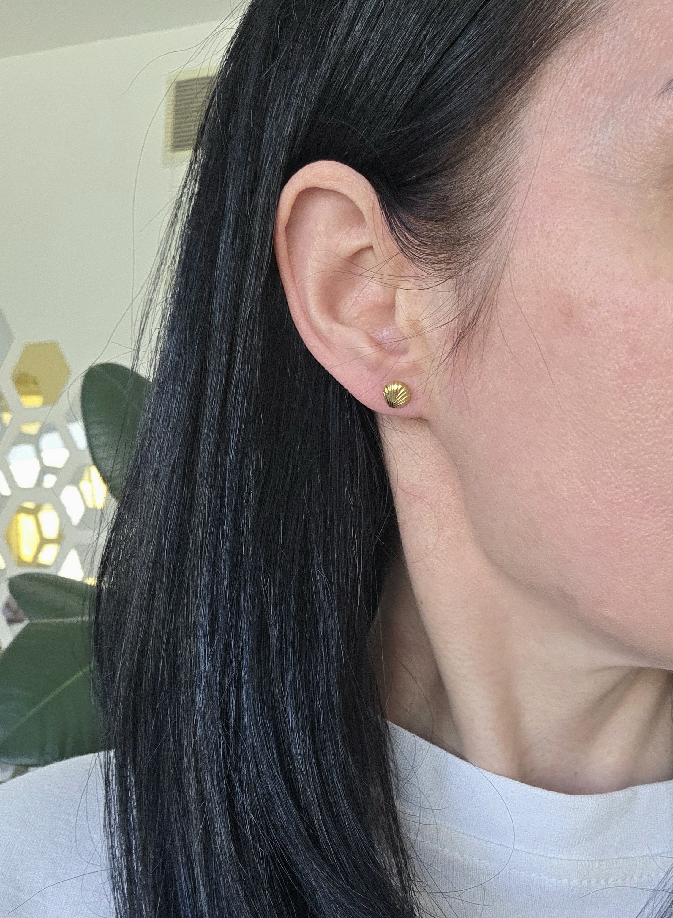 Mini auskariukai prie ausies, kai norisi mažo akcento.