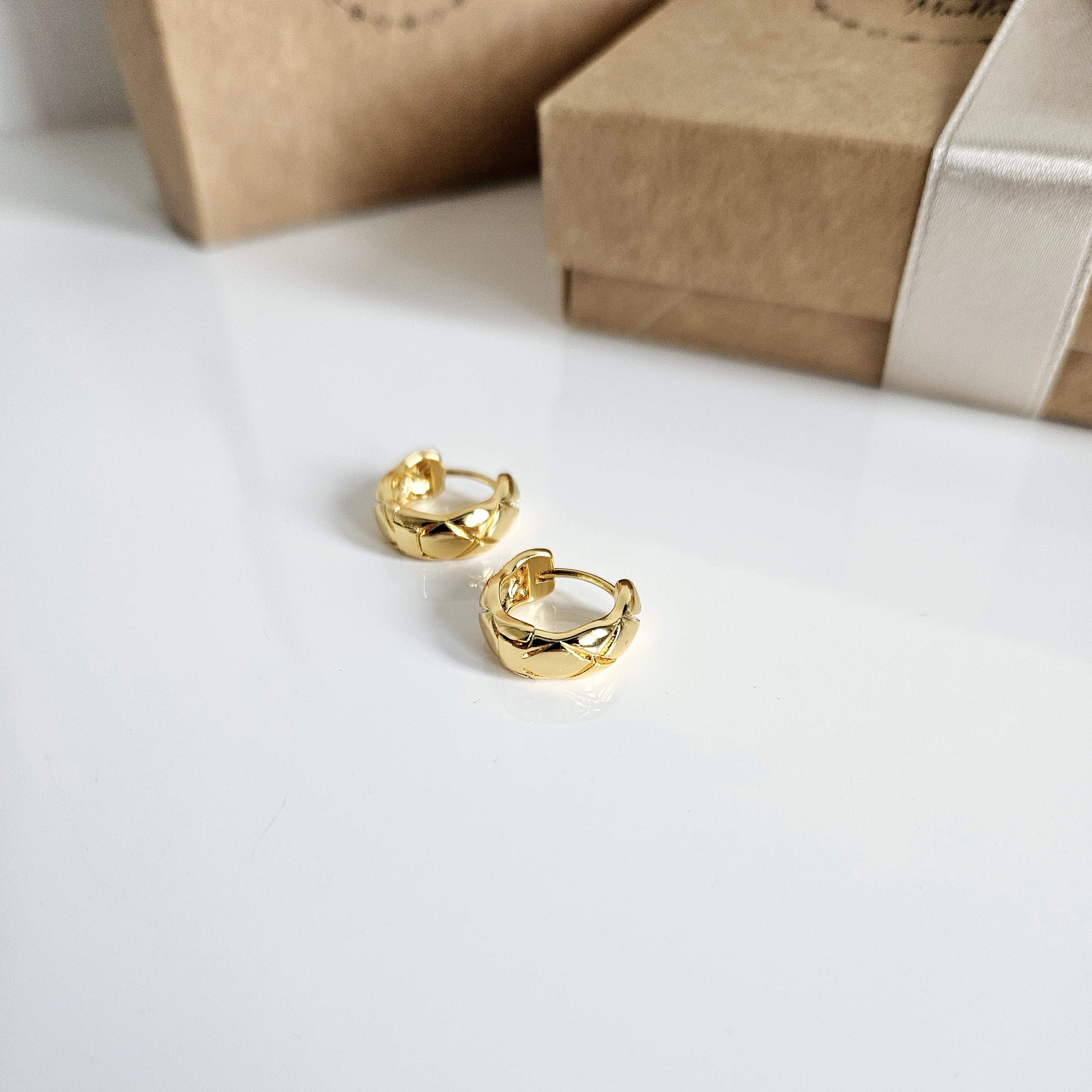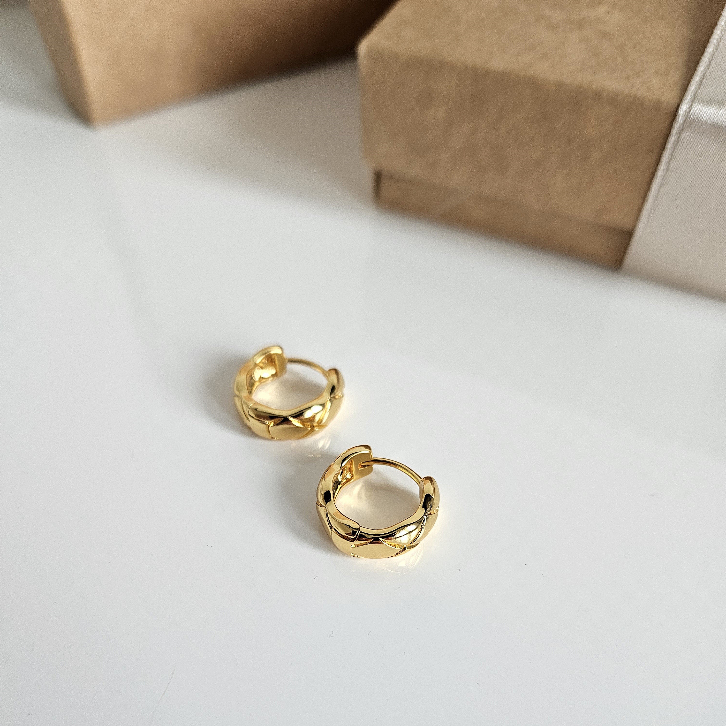 Pintas raštas suteikia tekstūros, gylio ir unikalumo, todėl jie atrodo įdomesni nei lygūs auskarai.