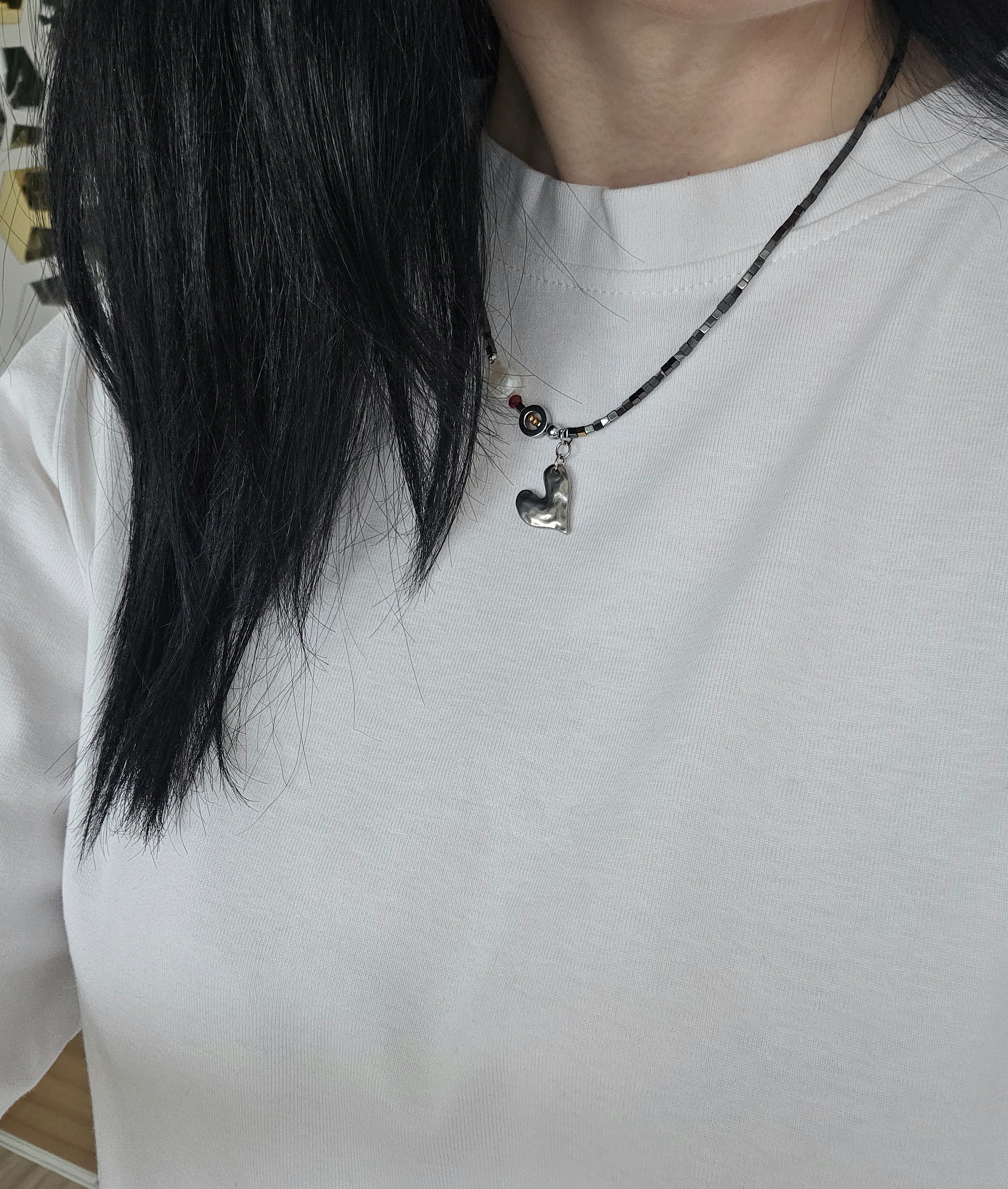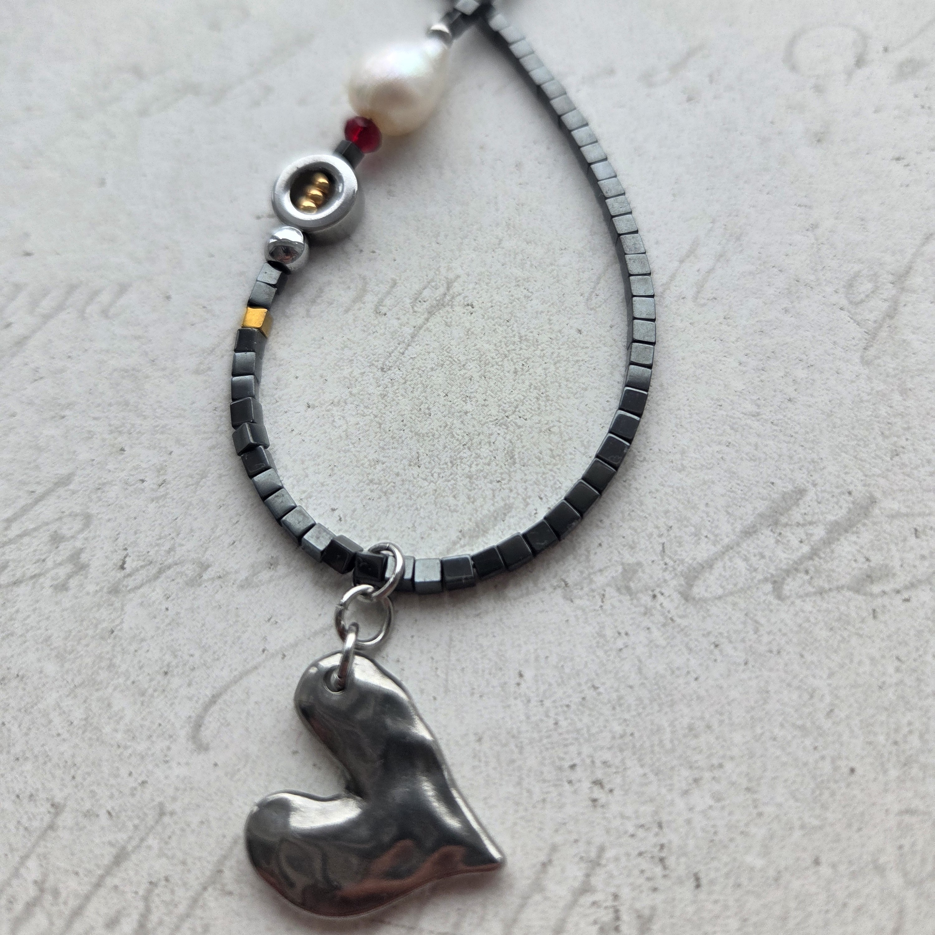 Elegantiškas hematito vėrinys su širdelės pakabuku - tai ne tik papuošalas, tai istorija. Vėrinys - puikus pasirinkimas norinčioms pabrėžti savo individualų stilių.