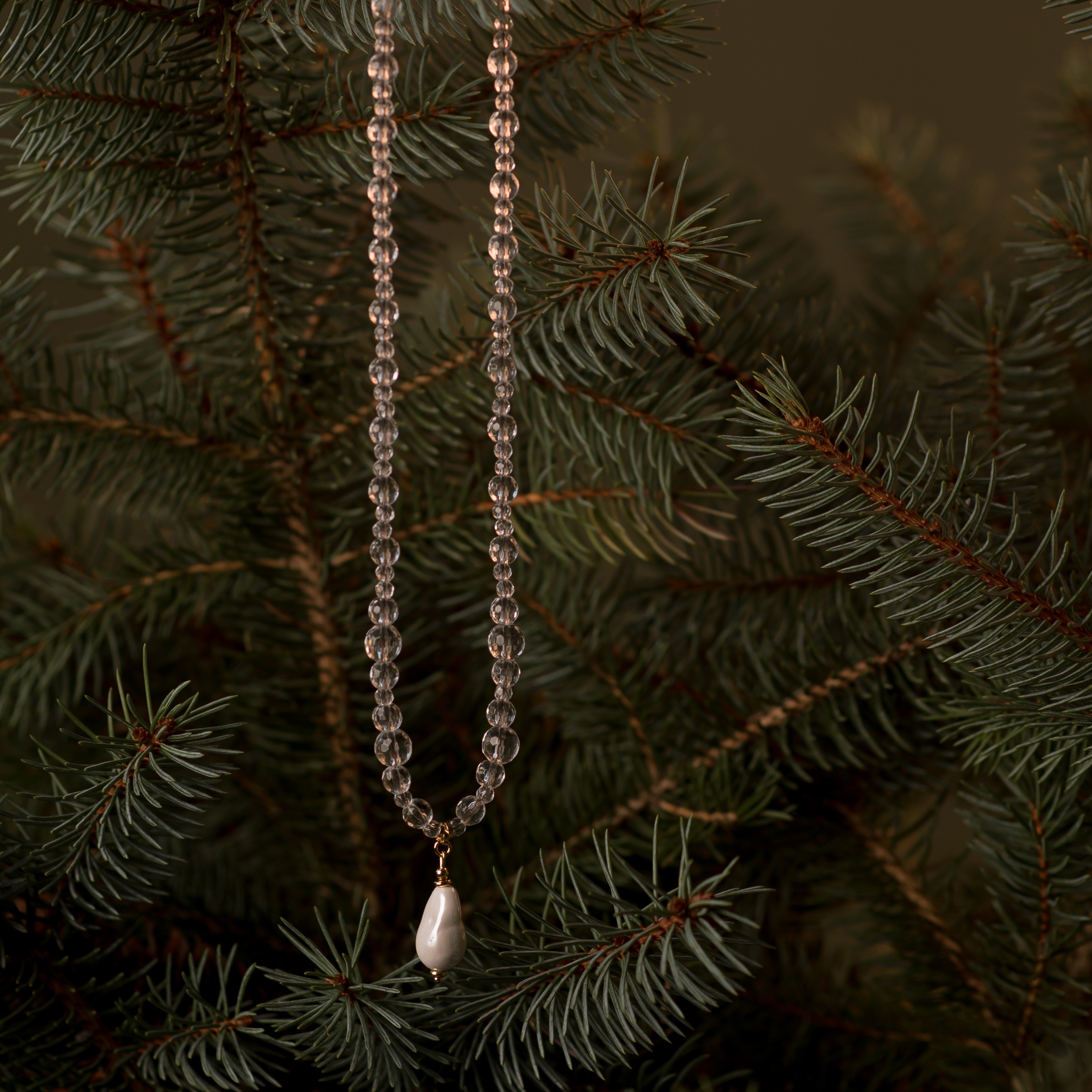 Lengvas, gaivus ir viskam tinkantis – šis vėrinys iš kalnų krištolo su Shell perlo pakabuku tiks tiek kasdienai, tiek vakarui. Skaidrūs karoliukai suteikia švaros pojūtį ir lengvai dera prie bet kokio įvaizdžio.